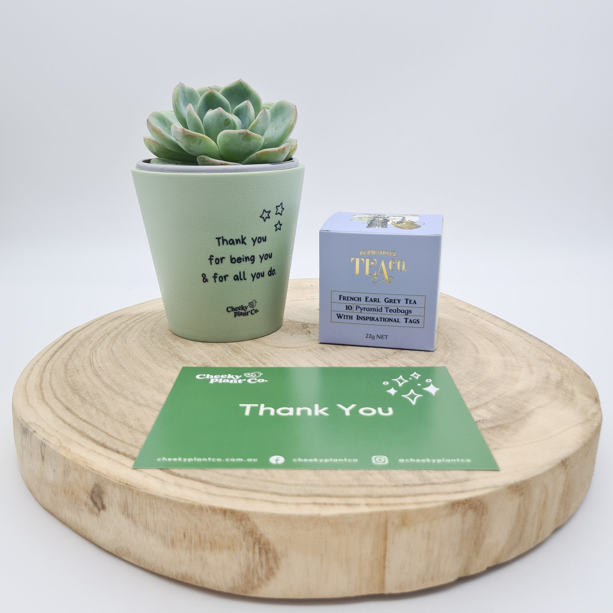 Express your heartfelt appreciation with the Employee Thank You For Everything Gift Box, a unique combination of thoughtfulness and care. This gift features a resilient succulent in a pot engraved with "Thank you for being you and for everything you do," symbolising appreciation and enduring growth. Accompanied by lovely tea, this gift box is the perfect way to acknowledge your team's hard work and dedication, making them feel truly valued.