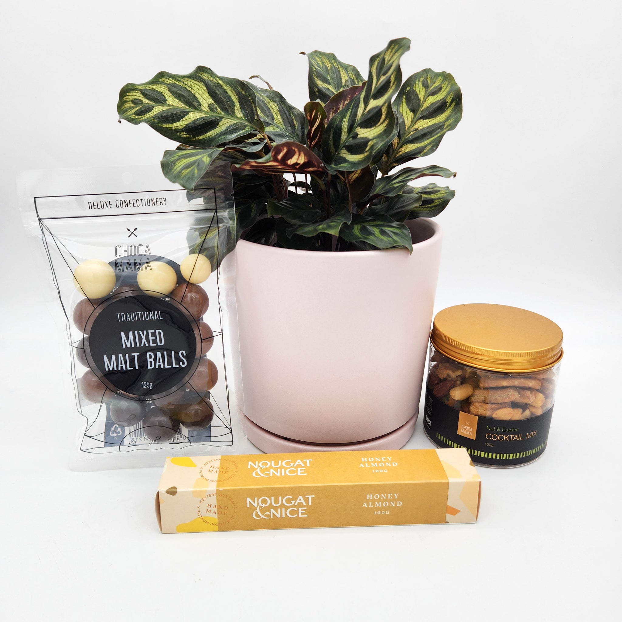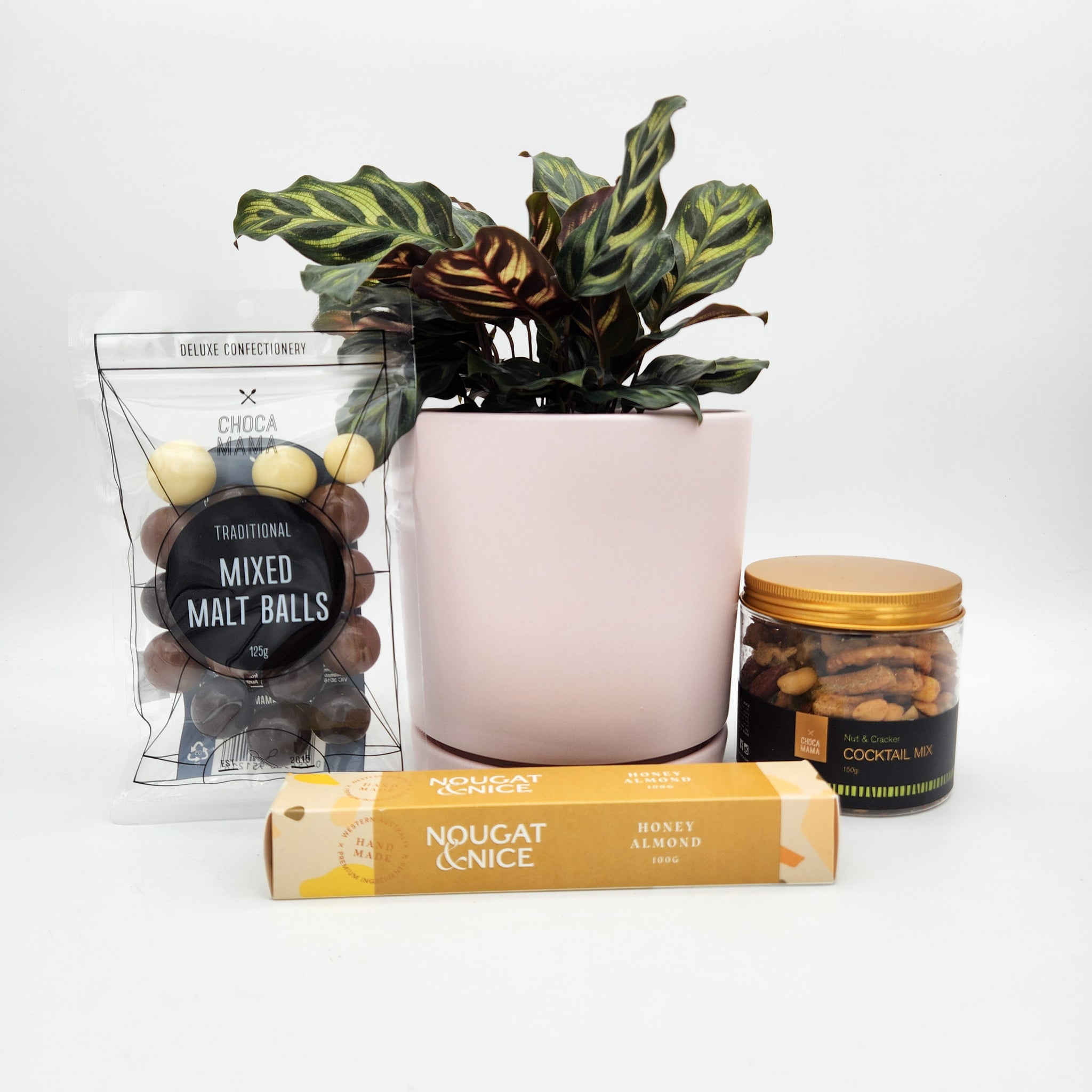Looking for a birthday gift that’s not just flowers? This Happiest Birthday Plant Gift Hamper is the perfect choice. This unique birthday gift includes a beautiful assorted houseplant in a pink ceramic pot, along with delicious birthday treats – a thoughtful way to say happy birthday and celebrate another year of growth and joy.