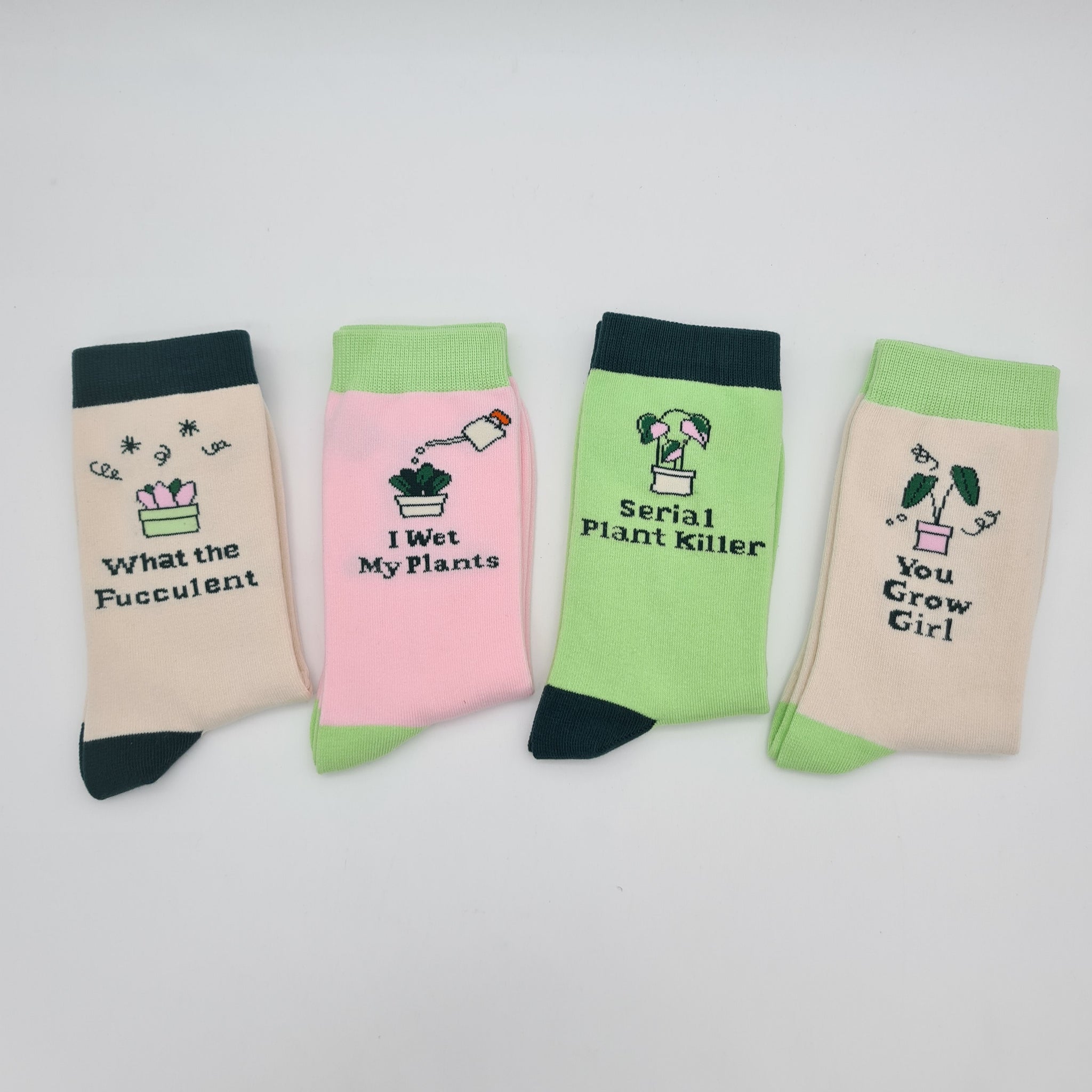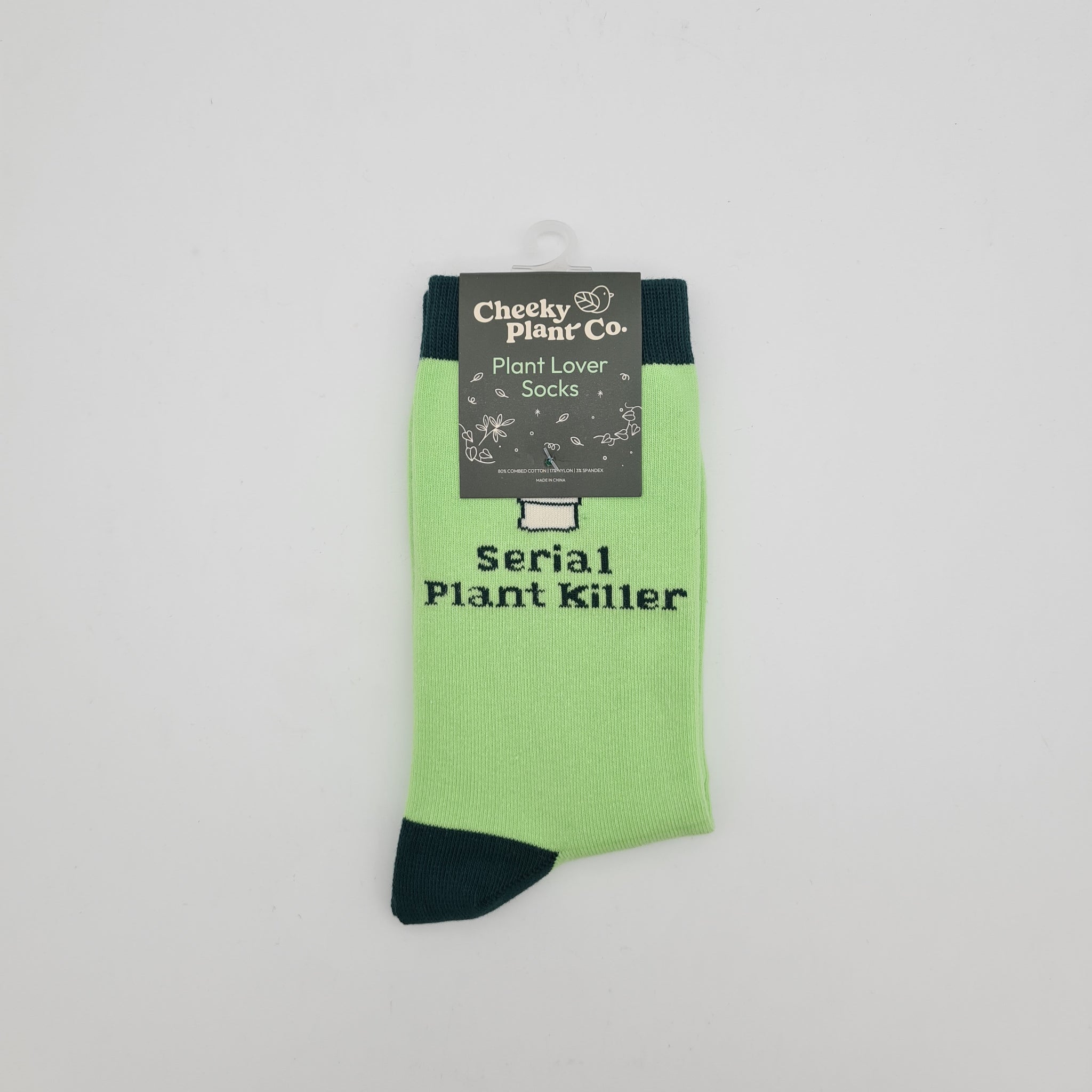 Step into the cheeky world of plant people with our "Serial Plant Killer" crew socks! These light and dark green socks are a fun nod to anyone who's had plant struggles. Whether you're still learning or embracing the chaos, these socks bring humour to your style.