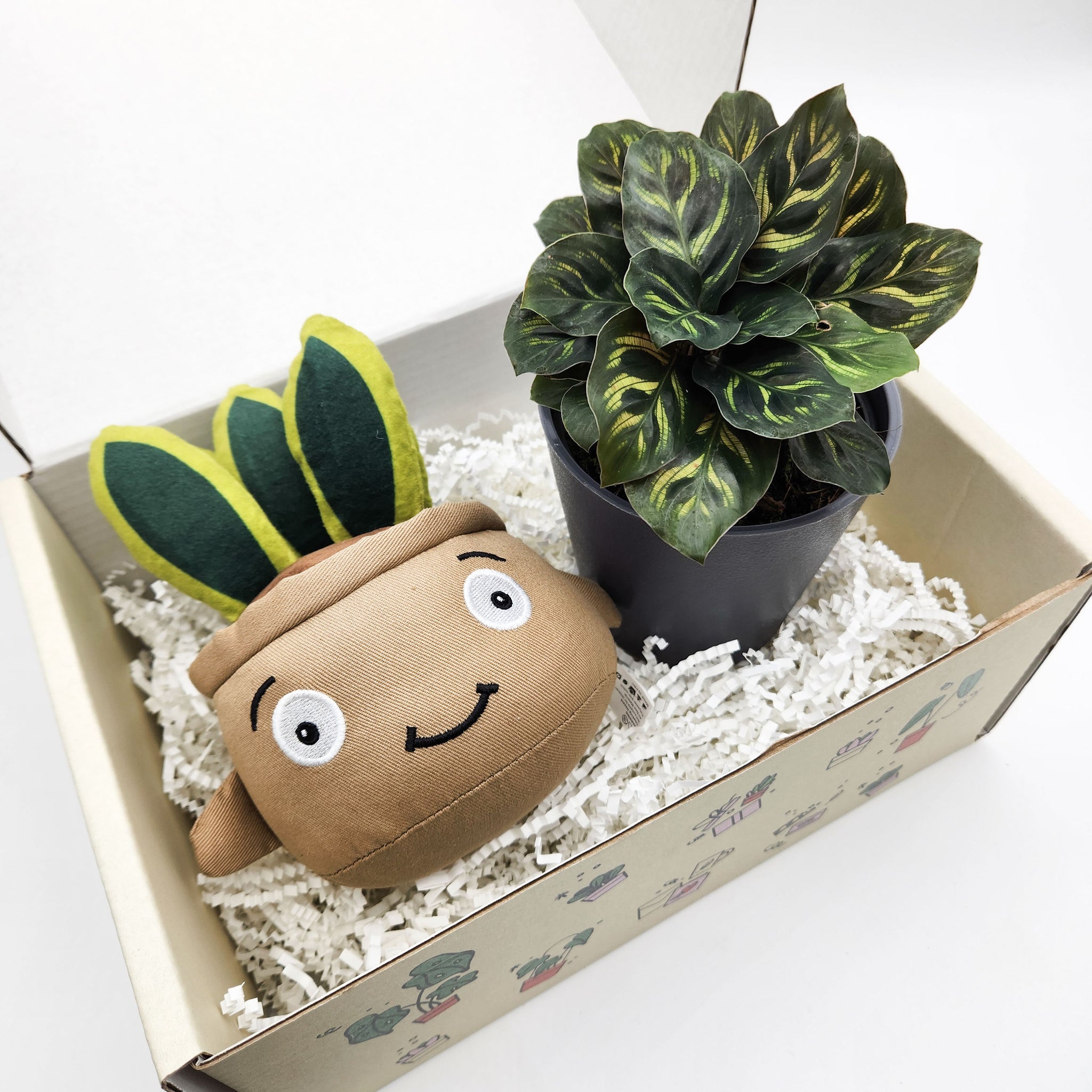 Each Plushie & Plant Gift Box includes the below items:
