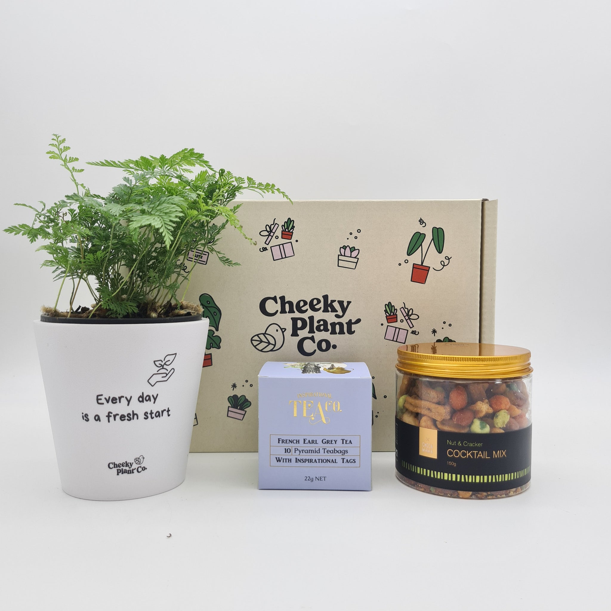 Discover the ultimate feel-good gift with the Positive Vibes - Plant Gift Box. Featuring an indoor plant in a positive pot and delicious goodies, it's the perfect way to spread cheer and positivity in someone's life.