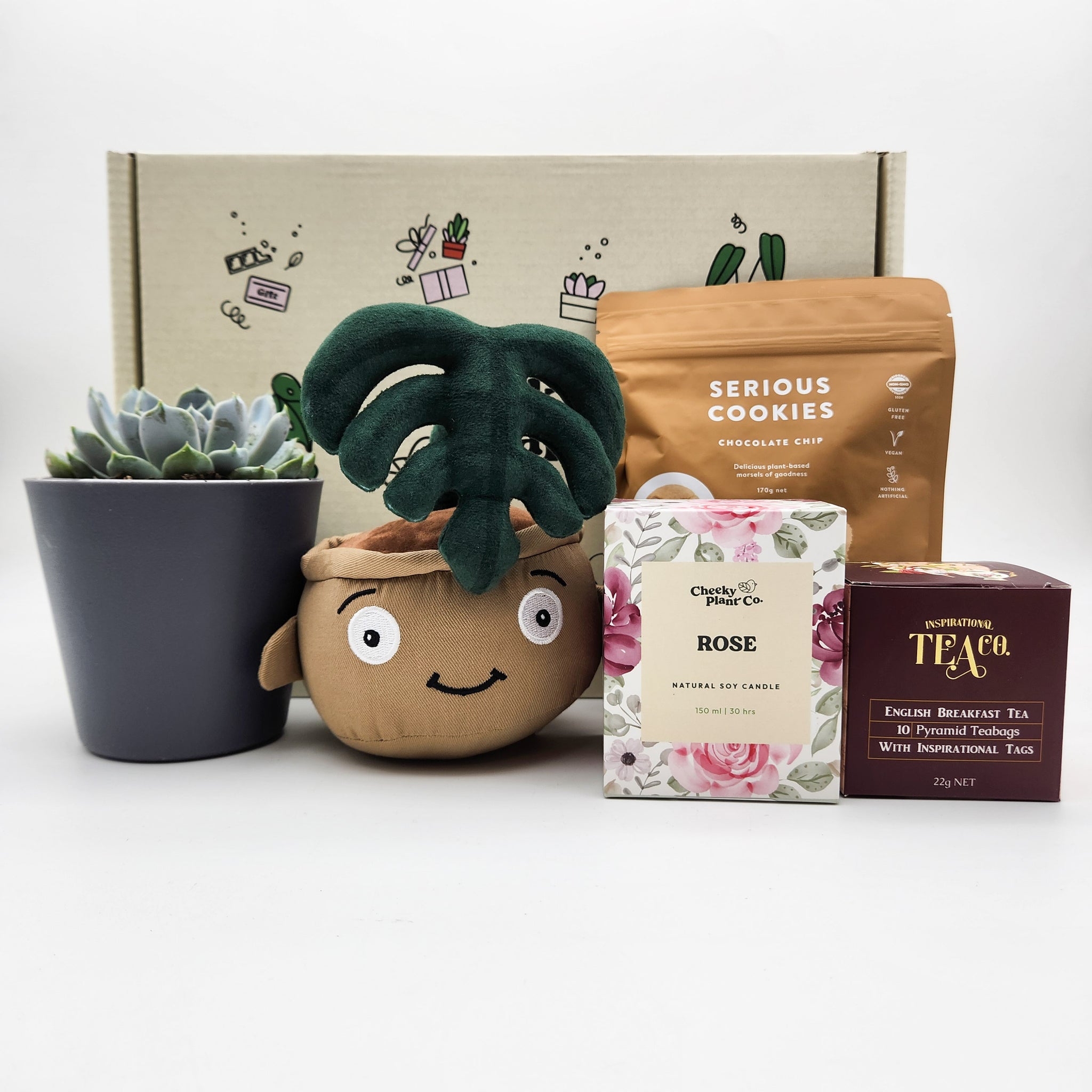 Show your appreciation with our Thank You Succulent Hamper Gift Box. Featuring a randomly selected succulent plant as well as a great mix of long-lasting, delicious and relaxing gift items to help say "Thank You".